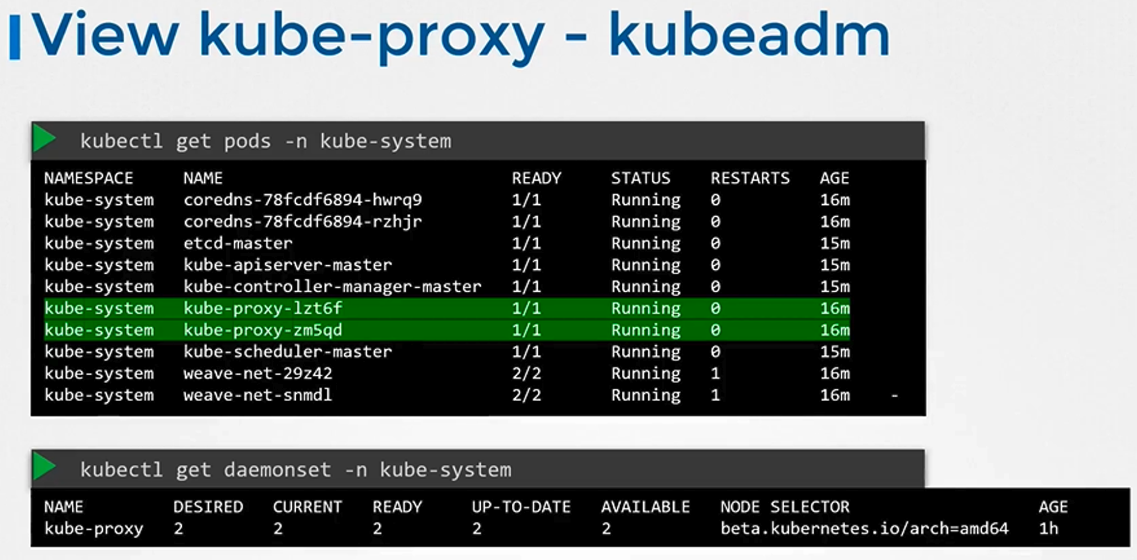 - kubeadm 툴이 kube-proxy를 각 노드에 배포한다. (마스터 노드에 데몬셋으로 배포된다)