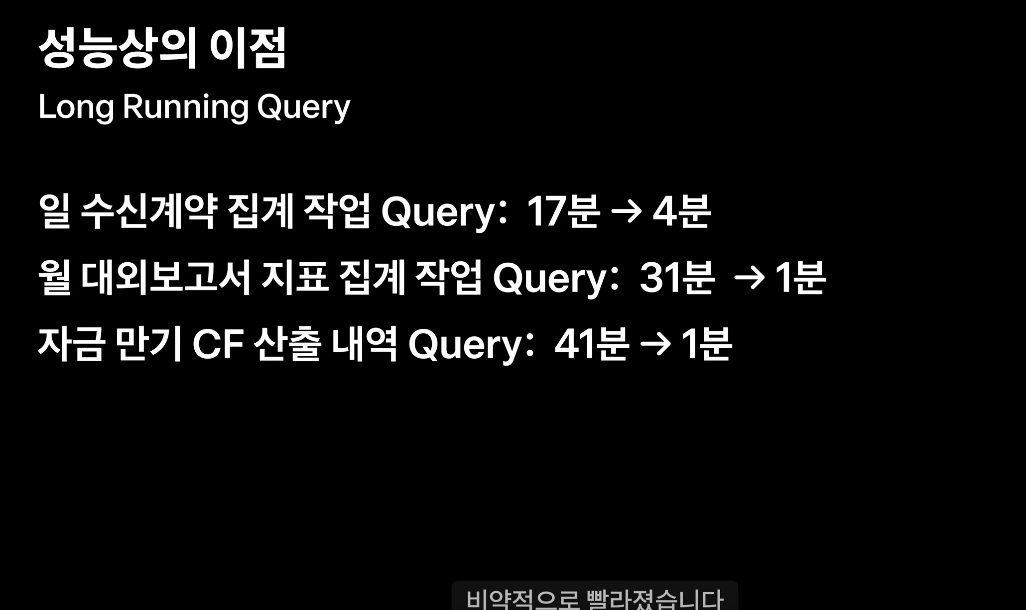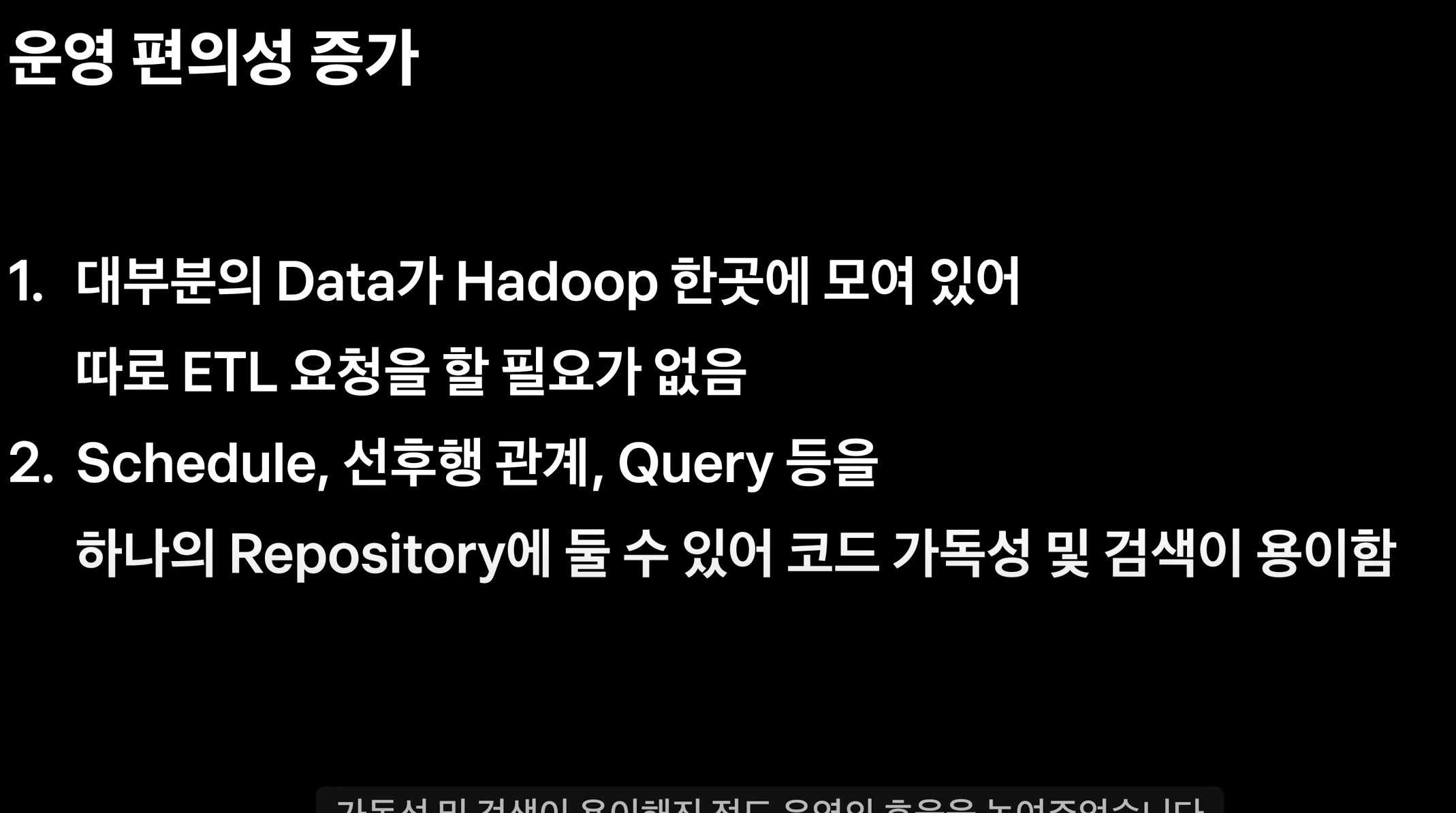 - 하둡에 쌓고, 또 Oracle Exa 에 옮기는 불필요한 분산이 존재