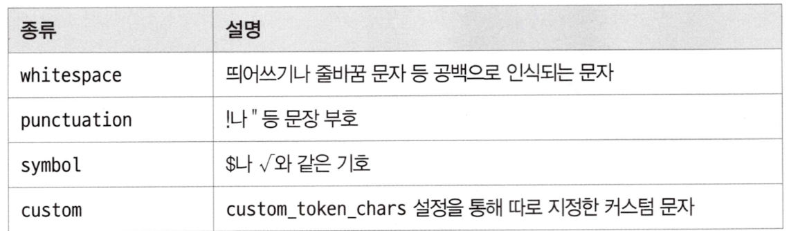 ngram 의 token_chars 속성으로 지정할 수 있는 값